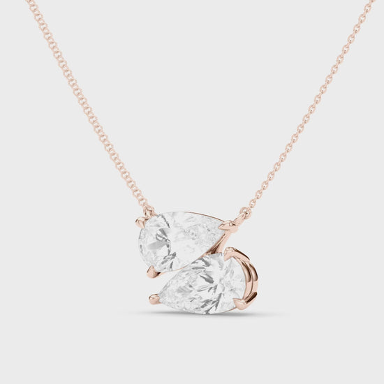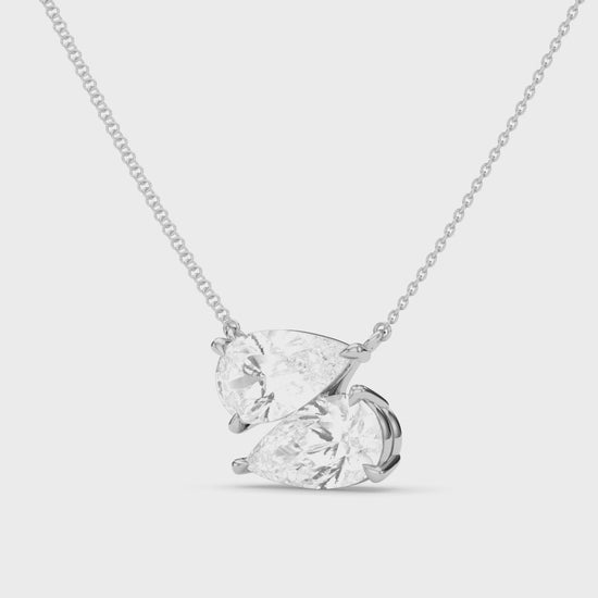 Twin Pear East-West Daimond Pendant With Chain
